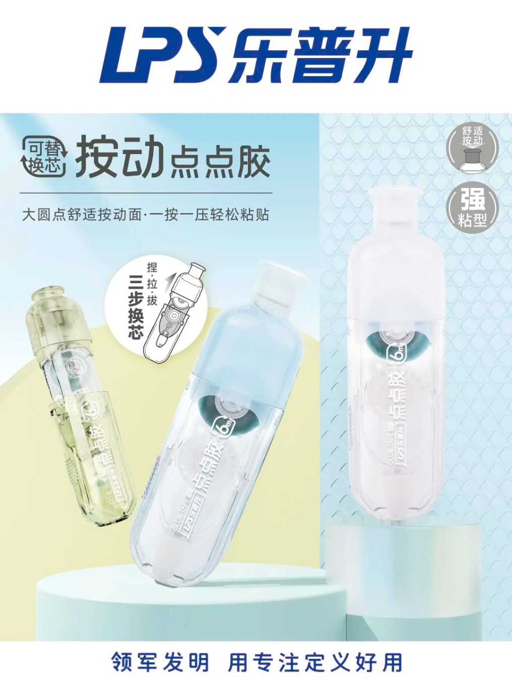 樂普升點點膠系列:廣泛適用于粘貼錯題、票據以及制作手賬等多種場景,一劃一貼,操作便捷。241A按動點點膠,升級為按動式設計及可替換芯,成為高效率粘貼的得力助手。