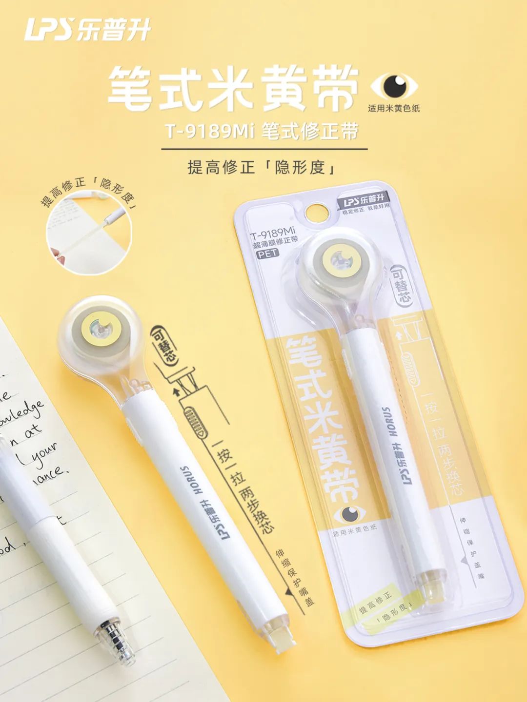 獨特米黃色帶芯 ,與米黃紙張完美融合,修正后直接“隱形” ;